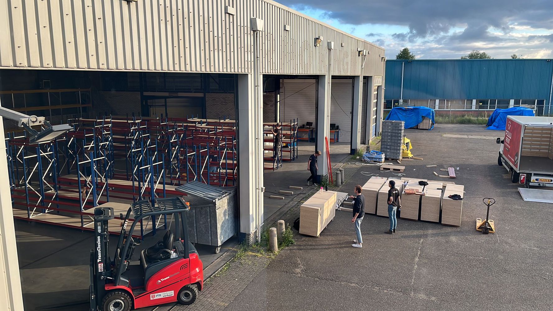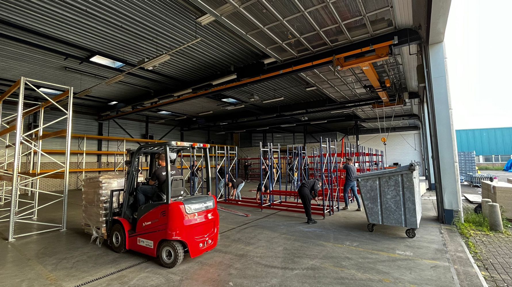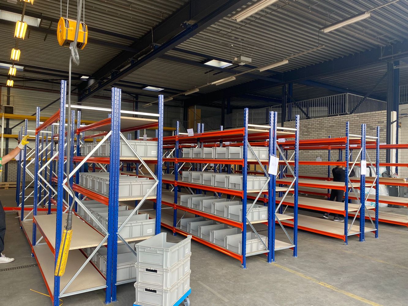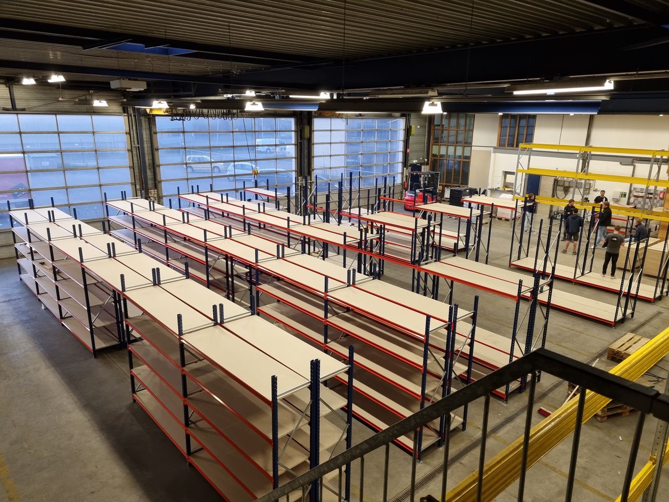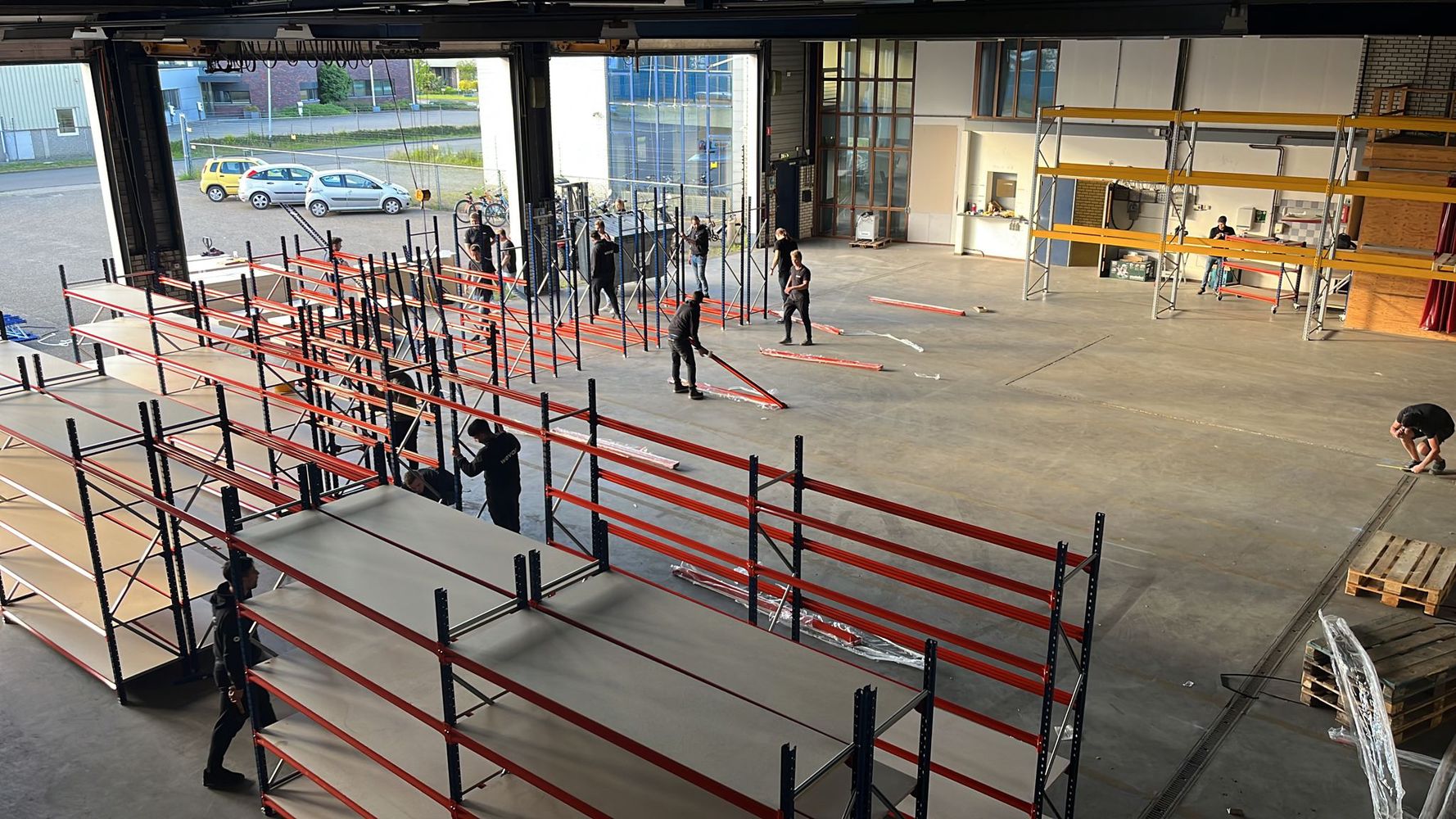 Maandagavond, nog geen 48 uur na het ontstaan van de brand aan de Emdenweg, zijn de stellingen op onze nieuwe locatie succesvol opgebouwd! De volgende stap is nu om de voorraad te controleren, producten weer in te kopen en onze stellingen in te richten. Zo hopen wij volgende week het orderproces weer op te kunnen pakken!