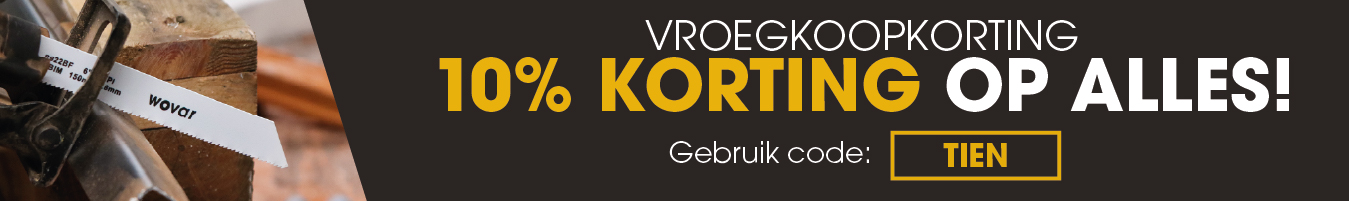 Profiteer nu bij Wovar van 10% korting op ons gehele assortiment tot en met 8 februari! Gebruik kortingscode TIEN in jouw winkelmand. Wacht niet langer en ontdek ons uitgebreide aanbod aan hoogwaardige producten voor jouw klusprojecten. Haal het beste in huis voor minder!