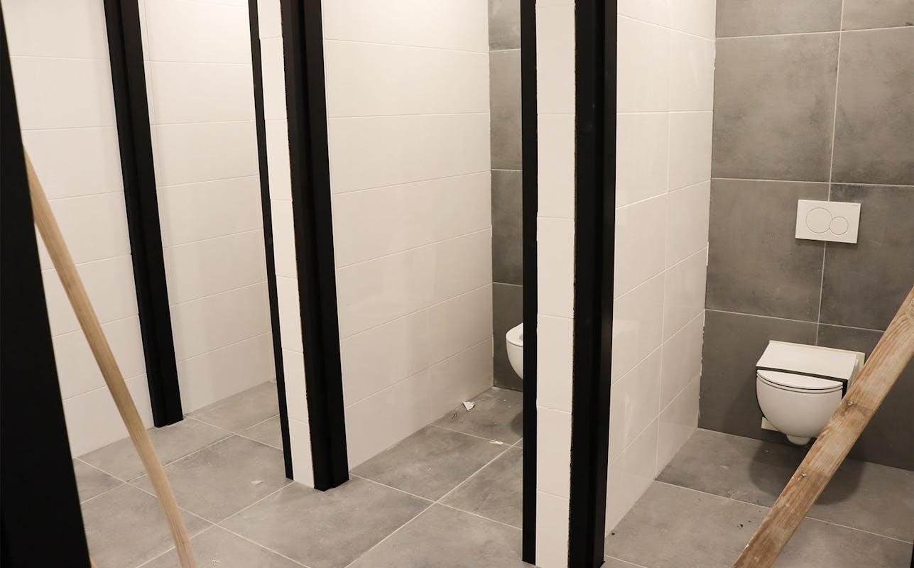 Inmiddels zijn alle muren voorzien van een likje verf. De vloer van Floer ligt er grotendeels in, op een paar plekken na. Hier wordt nog hard gewerkt aan het leggen van de laatste stukken vloer. Het plafond met de verlichting is inmiddels door het hele pand klaar. Ook de toiletten zijn betegeld en er hangen ondertussen toiletpotten in. Helaas kan je nog niet naar het toilet, dat moet je nog even ophouden tot volgende week. Vanaf dan is het de verwachting dat de toiletten het ook doen. Sinds kort staat er beneden in de loods een bunker voor alle beits, olie en verf. Hier kan alles veilig worden opgeslagen, om ontploffingsgevaar tijdens een brand bijvoorbeeld te voorkomen.
